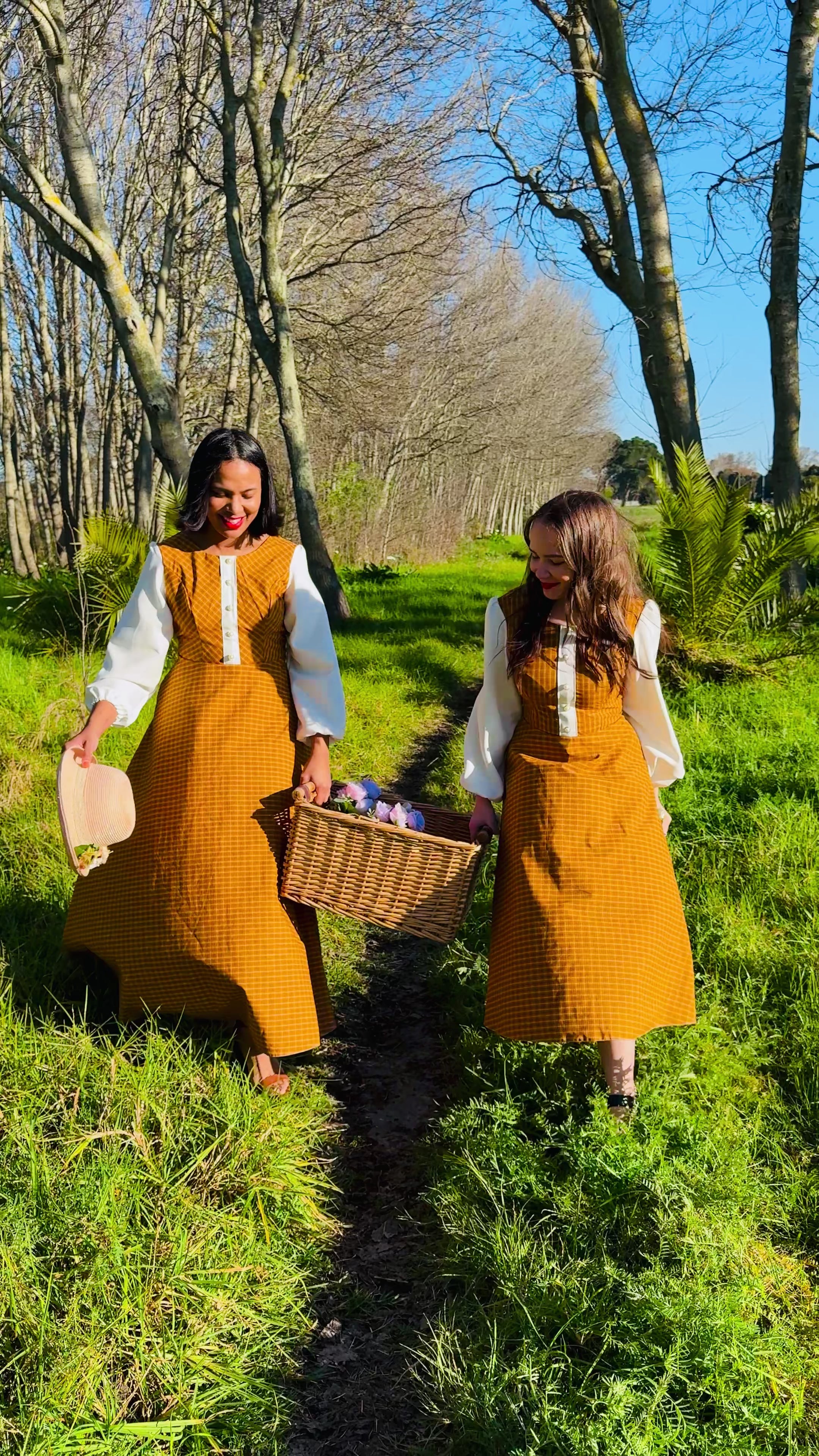 The tailored bodice is accented with a button-down front and soft white long sleeves, finished with gathered cuffs for a graceful touch. Flowing into a full-length skirt, the dress creates a flattering silhouette that’s both modest and chic. Perfect for women who appreciate refined style with a timeless twist.
